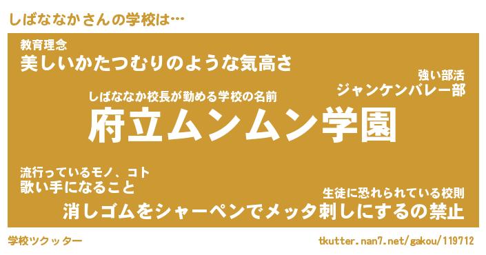 | 男性向けラノベタイトル風あだ名 | 『しばななかの憂鬱』 |