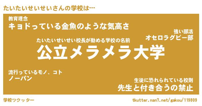 | 男性向けラノベタイトル風あだ名 | 『たいたいせいせいの憂鬱』 |