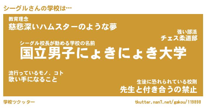 | 意味不明あだ名 | 『ペロリンシーグル』『永久保存シーグル』 |