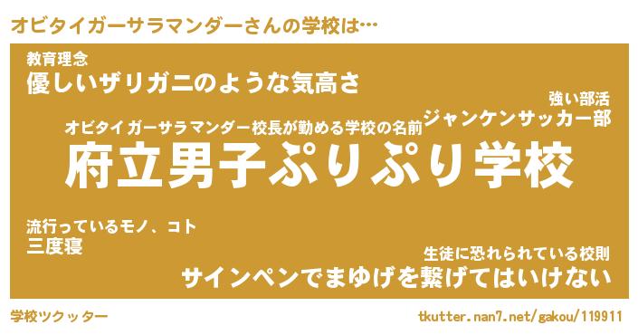 | 先生 | オビタイガーサラマンダー先生が勤める学校名『道立ささくれ小学校』 |