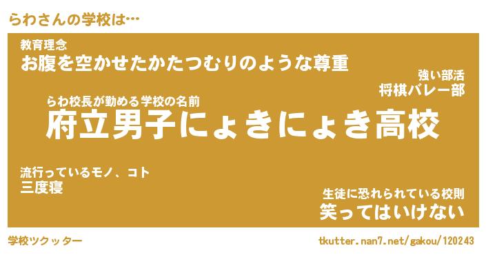 | ヘコむあだ名 | 『らわにゅー』『酢こんぶ』 |