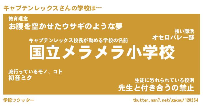 | 先生 | キャプテンレックス先生が勤める学校名『国立猫耳中学校』 |