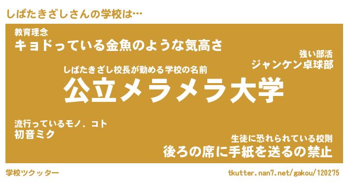 | ヒーロー風カッコイイあだ名 | 『スーパーシバタキザシ』『暗黒騎士シバ』 |