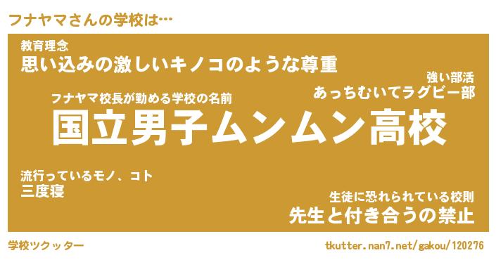 | ヒーロー風カッコイイあだ名 | 『スーパーフナヤマ』『銀牙騎士フナ』 |