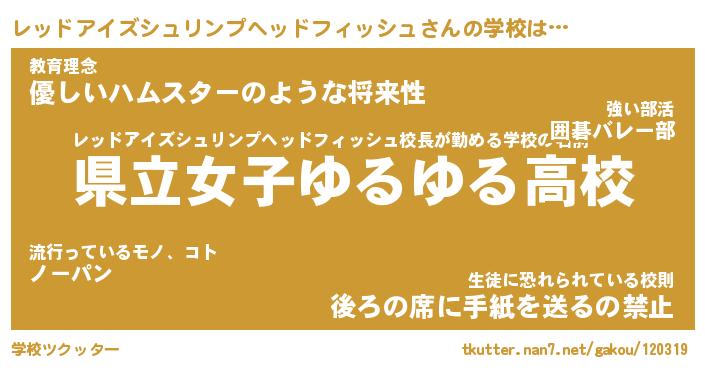 | 男性向けラノベタイトル風あだ名 | 『レッドアイズシュリンプヘッドフィッシュアートオンライン』 |