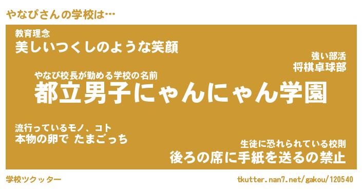 | ピコ太郎風あだ名 | 『ヤコ四郎』『ピヤ三郎』『ヤナ二郎』 |