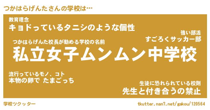 | 先生 | つかはらげんた先生が勤める学校名『府立もふもふ中学校』 |