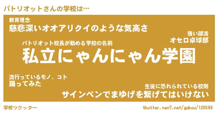 | 男性向けラノベタイトル風あだ名 | 『パトリオットの憂鬱』 |