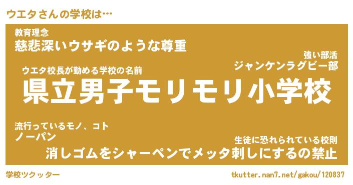 | ヘコむあだ名 | 『ウエふぇ~』『牛乳』『ウエっちょ』 |