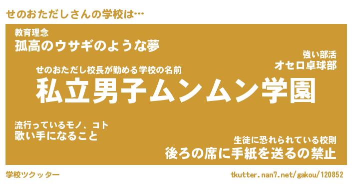 男性向けラノベタイトル風あだ名 | 『せのおただしの憂鬱』 |