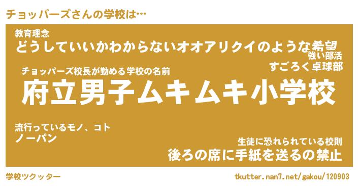 | ヒーロー風カッコイイあだ名 | 『スーパーチョッパーズ』『天弓騎士チョ』 |