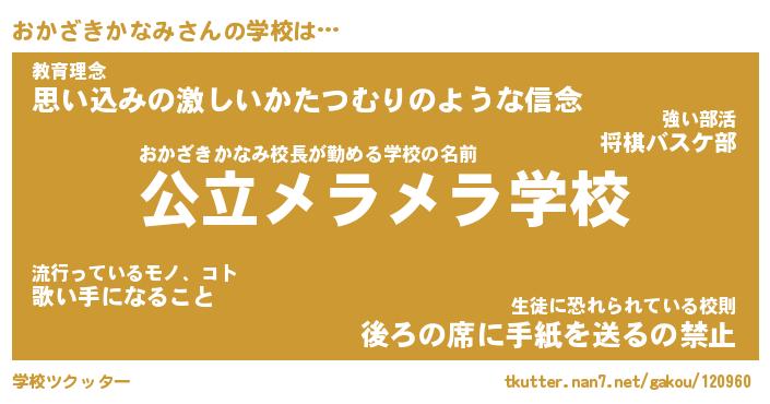 | 男性向けラノベタイトル風あだ名 | 『おかざきかなみの憂鬱』 |
