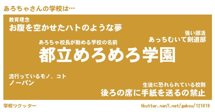 | 伝説のあだ名 | 『伝説のスナイパーあろちゃ』 |