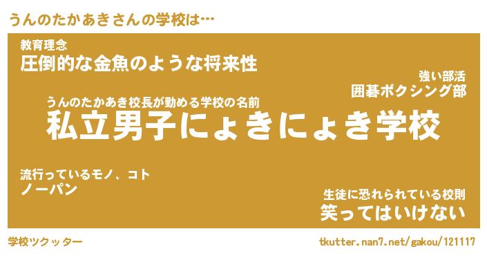 | 男性向けラノベタイトル風あだ名 | 『うんのたかあきの憂鬱』 |