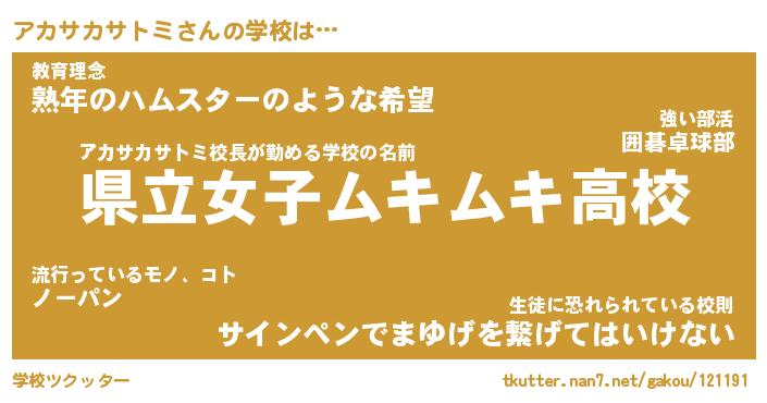 | 女子向けラノベタイトル風あだ名 | 『誰かこのアカサカサトミを説明してください! ~契約から始まるウェディング~』 |