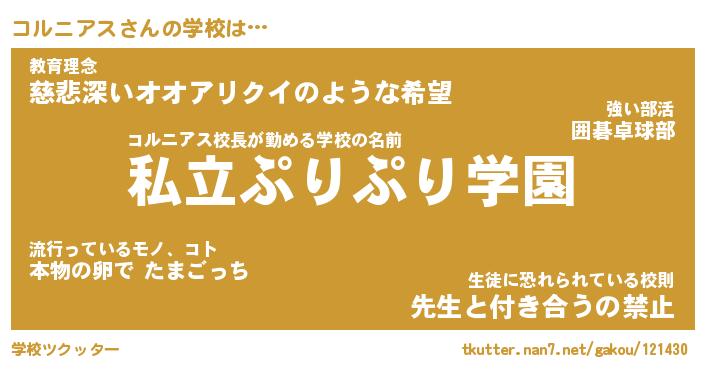 | ヒーロー風カッコイイあだ名 | 『スーパーコルニアス』『天弓騎士コル』 |