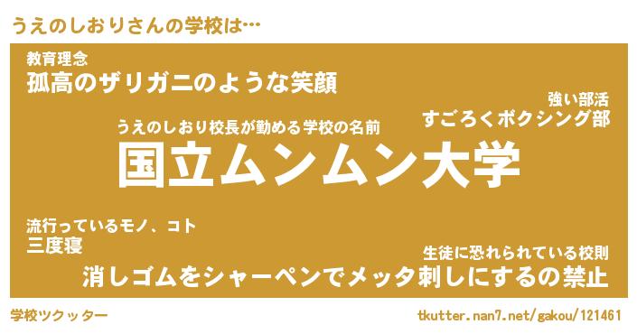 | ヘコむあだ名 | 『うえにゅー』『つくし』『うえ太郎』 |