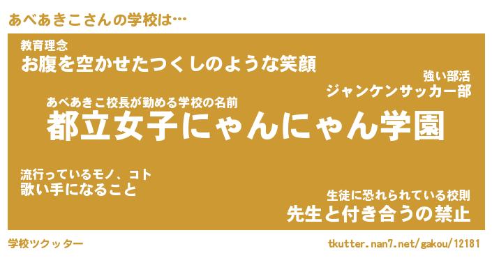 | 肩書あだ名 | 『あべあきこ社長令嬢』『あべあきこ団長』 |