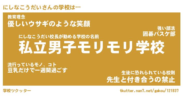 | ポケモン風あだ名 | 『ニシチュウ』『ニシナダネ』 |