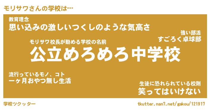 | 男性向けラノベタイトル風あだ名 | 『モリサワの憂鬱』 |