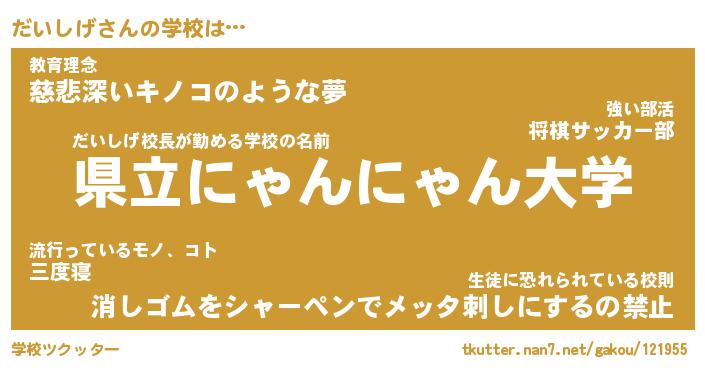 | 意味不明あだ名 | 『ペロリンだいしげ』『永久保存だいしげ』 |