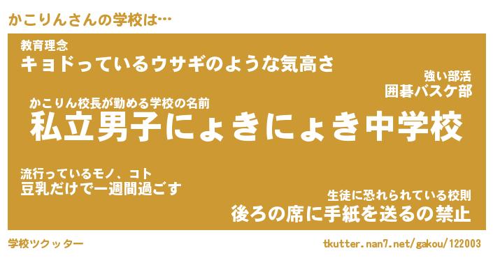 | 男性向けラノベタイトル風あだ名 | 『かこりんの憂鬱』 |