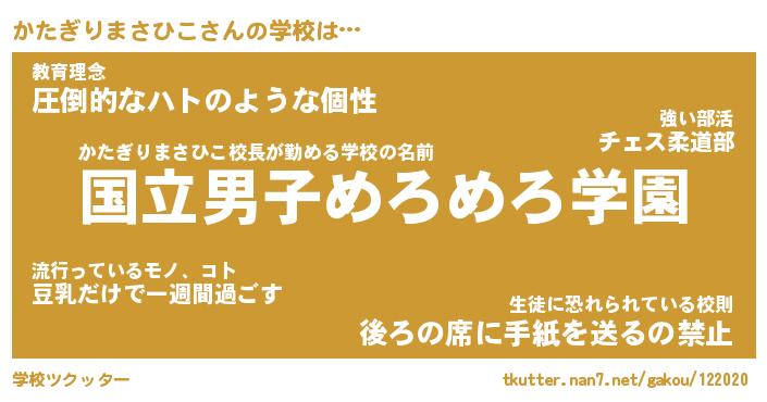 | 意味不明あだ名 | 『ペロリンかたぎりまさひこ』 |