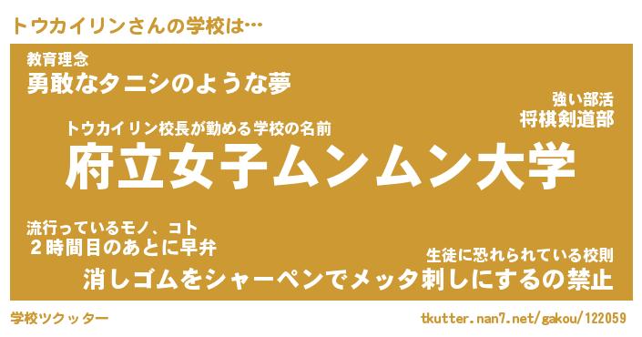 | 男性向けラノベタイトル風あだ名 | 『トウカイリンアートオンライン』 |