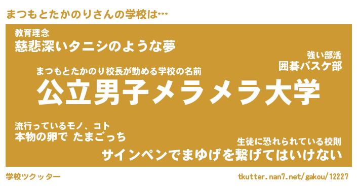 | 男性向けラノベタイトル風あだ名 | 『まつもとたかのりの憂鬱』 |