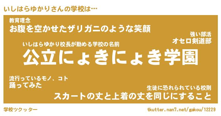 | 男性向けラノベタイトル風あだ名 | 『いしはらゆかりの憂鬱』 |