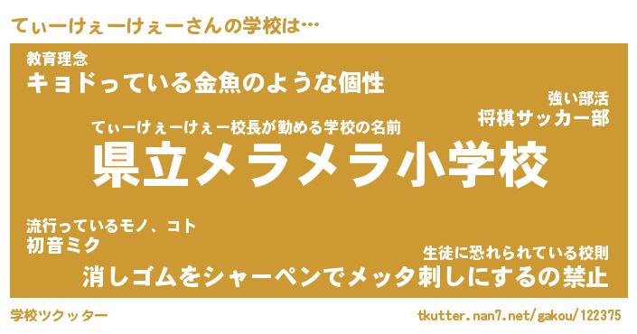 | 男性向けラノベタイトル風あだ名 | 『てぃーけぇーけぇーの憂鬱』 |