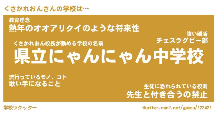 | 2回繰り返すあだ名 | 『くさくさ』『くくささ』『ことこと』 |