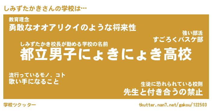 | 肩書あだ名 | 『しみずたかき店長』『しみずたかき先生』 |