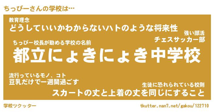 | ヘコむあだ名 | 『ちっにゅー』『豆乳』『ちっを』 |