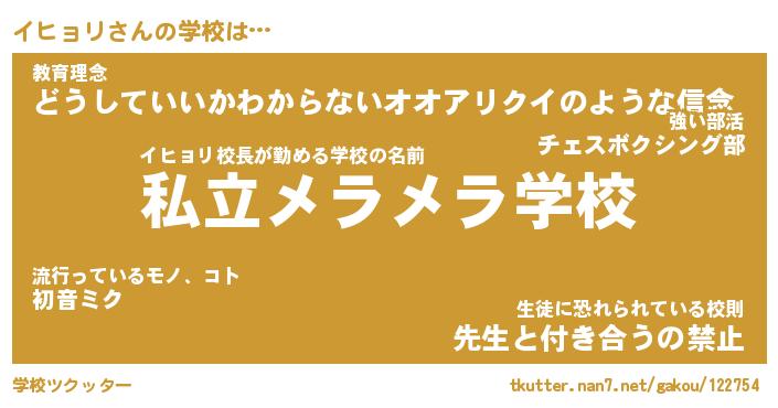 | 男性向けラノベタイトル風あだ名 | 『イヒョリの憂鬱』 |