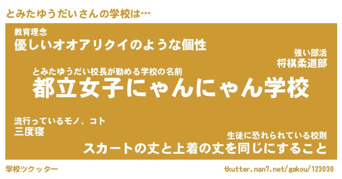 | ヘコむあだ名 | 『とみもー』『豆乳』『とみっ子』 |