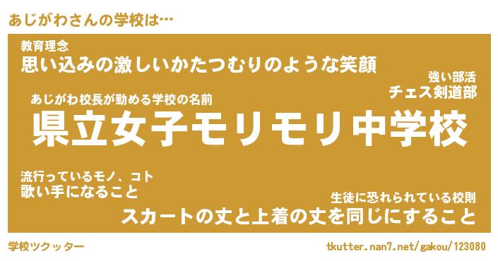 | 意味不明あだ名 | 『ペロリンあじがわ』『永久保存あじがわ』 |