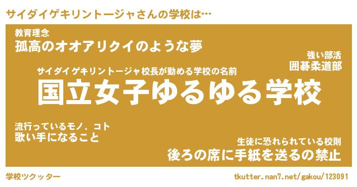 | 欧米人風あだ名 | 『マイケルサイダイゲキリントージャ』 |