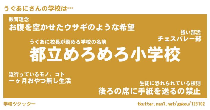 | 伝説のあだ名 | 『伝説のスナイパーうぐあに』 |