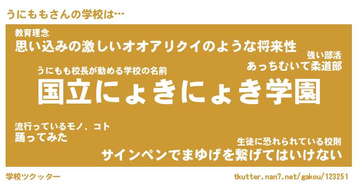 | ヘコむあだ名 | 『うににゅー』『つくし』『うにっぺ』 |