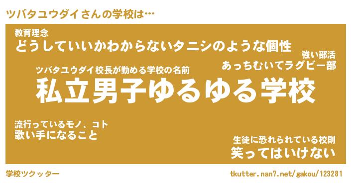| 男性向けラノベタイトル風あだ名 | 『ツバタユウダイの憂鬱』 |