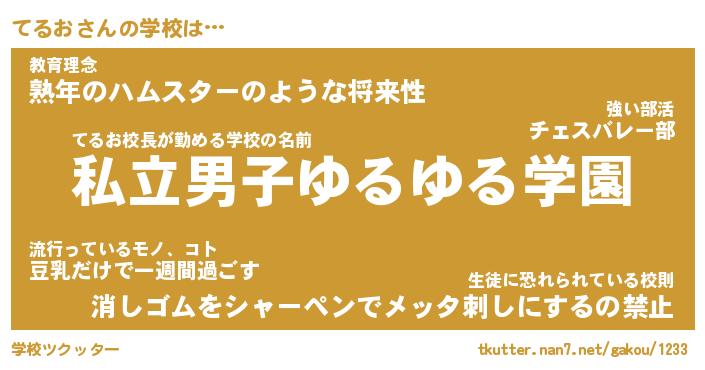 | てるお先生が勤める学校名『県立しゃくれ小学校』 |