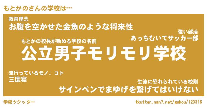 | 意味不明あだ名 | 『ペロリンもとかの』『永久保存もとかの』 |