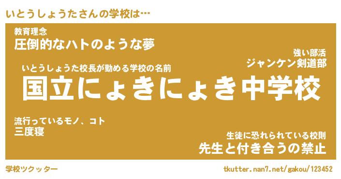 | 男性向けラノベタイトル風あだ名 | 『いとうしょうたの憂鬱』 |
