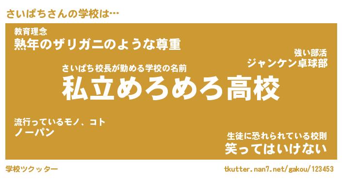 | 意味不明あだ名 | 『ペロリンさいぱち』『永久保存さいぱち』 |