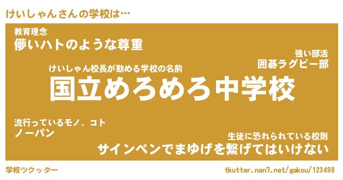 | 伝説のあだ名 | 『伝説のスナイパーけいしゃん』 |