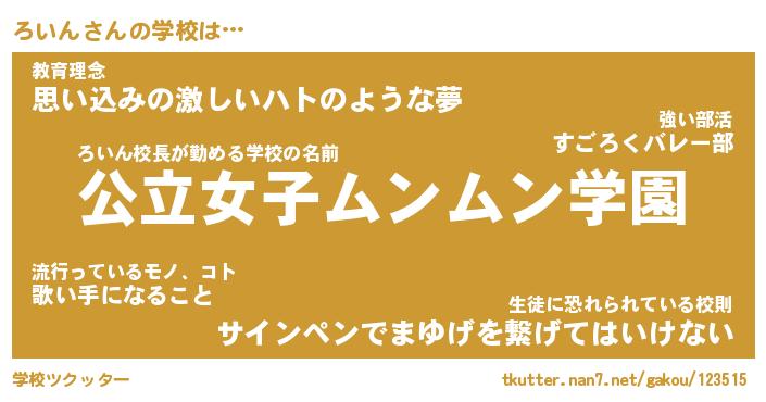 | ヘコむあだ名 | 『ろいにゅー』『なまこ酢』 |
