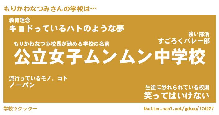 | 女子向けラノベタイトル風あだ名 | 『誰かこのもりかわなつみを説明してください! ~契約から始まるウェディング~』 |