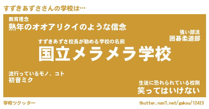 | ヒーロー風カッコイイあだ名 | 『スーパースズキアズサ』『暗黒騎士スズ』 |
