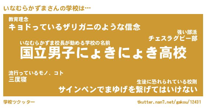 | 男性向けラノベタイトル風あだ名 | 『いなむらかずまの憂鬱』 |